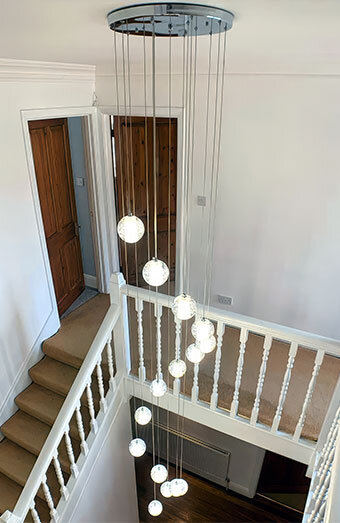 Professional installation of all lighting types including pendant lights, downlights, oyster lights, and chandeliers for new homes, renovations, or commercial spaces.